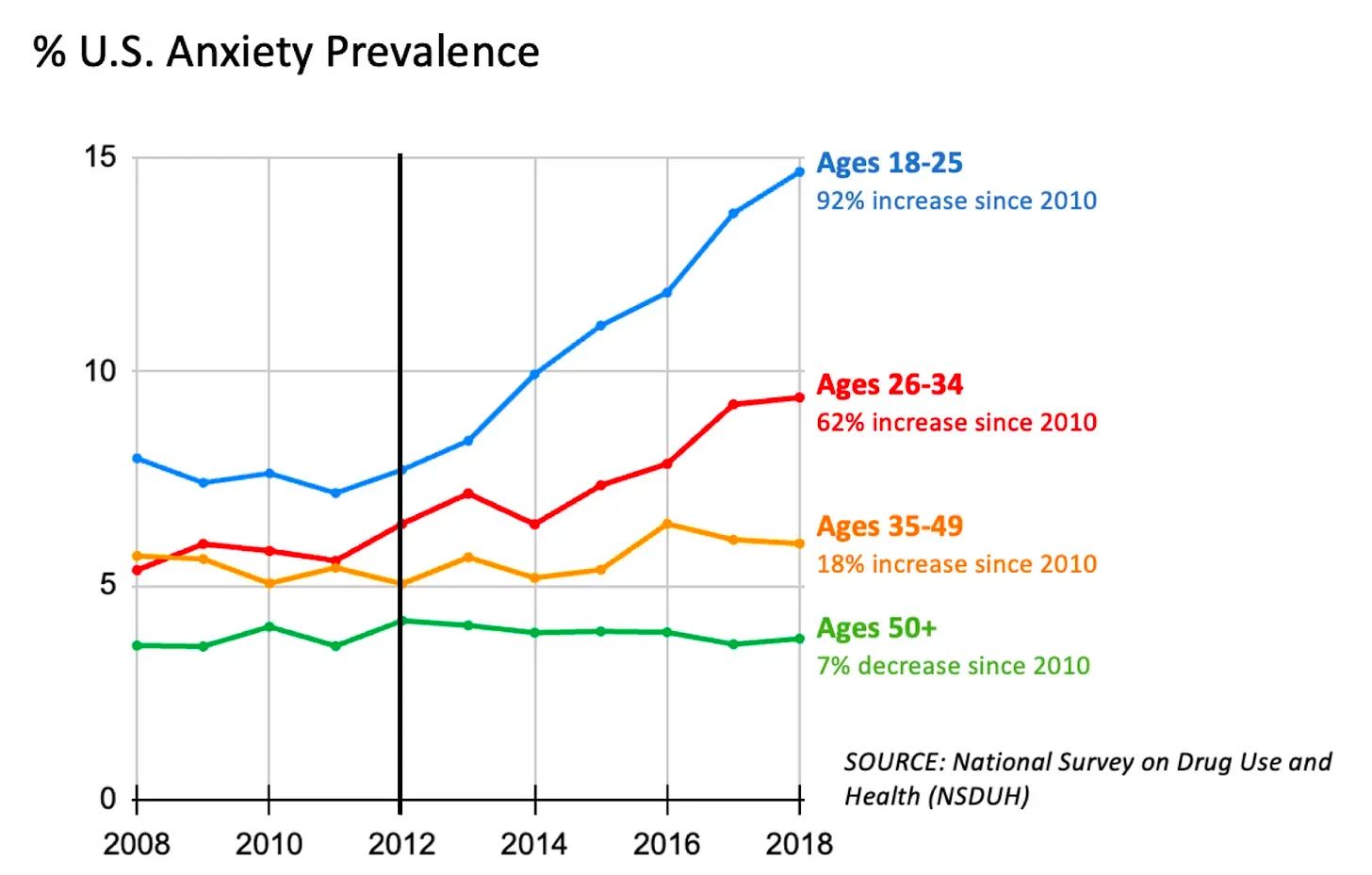Figure 3. Percent US Anxiety Prevalence. National Survey on Drug Use and Health (NSDUH). Image source: After Babel